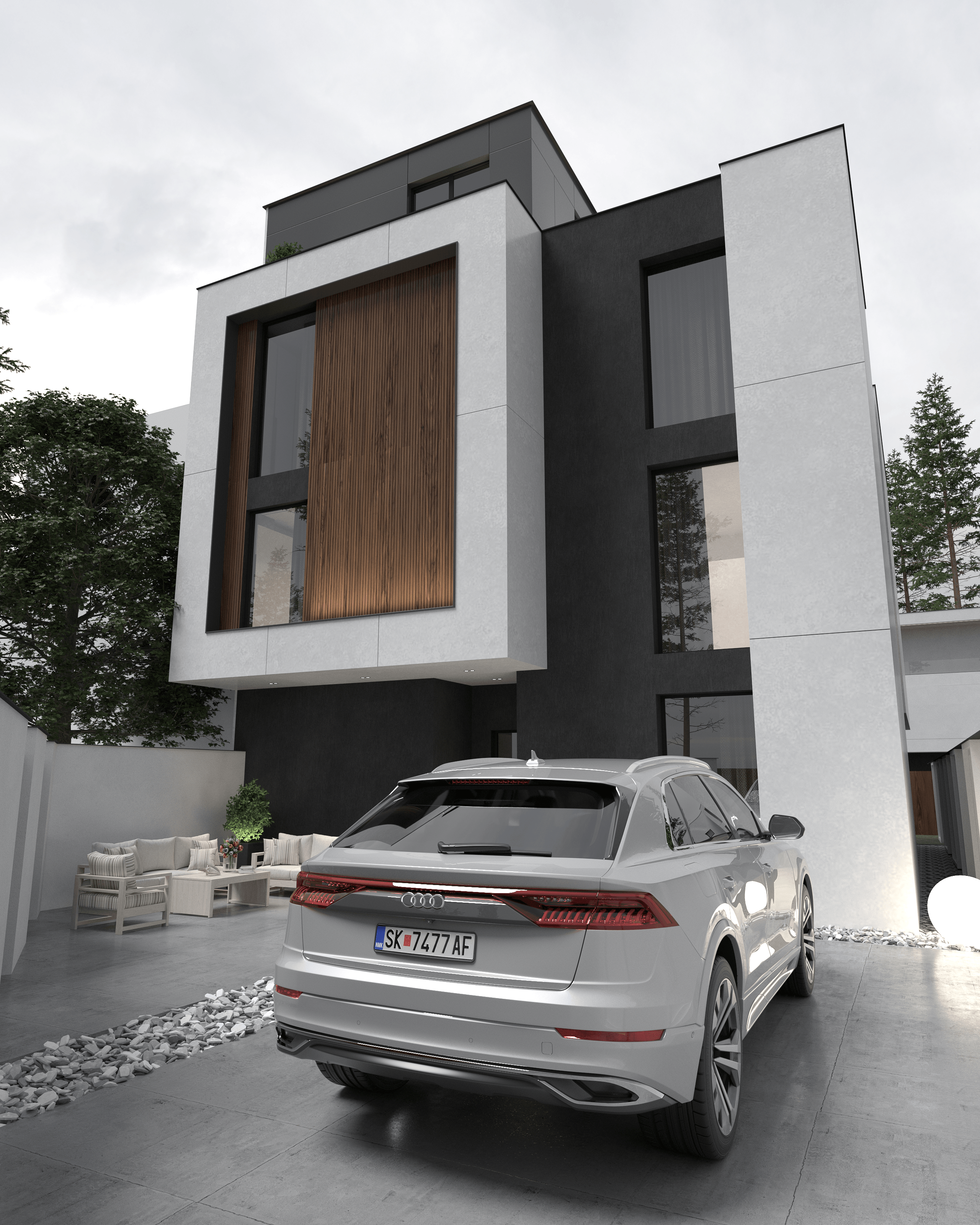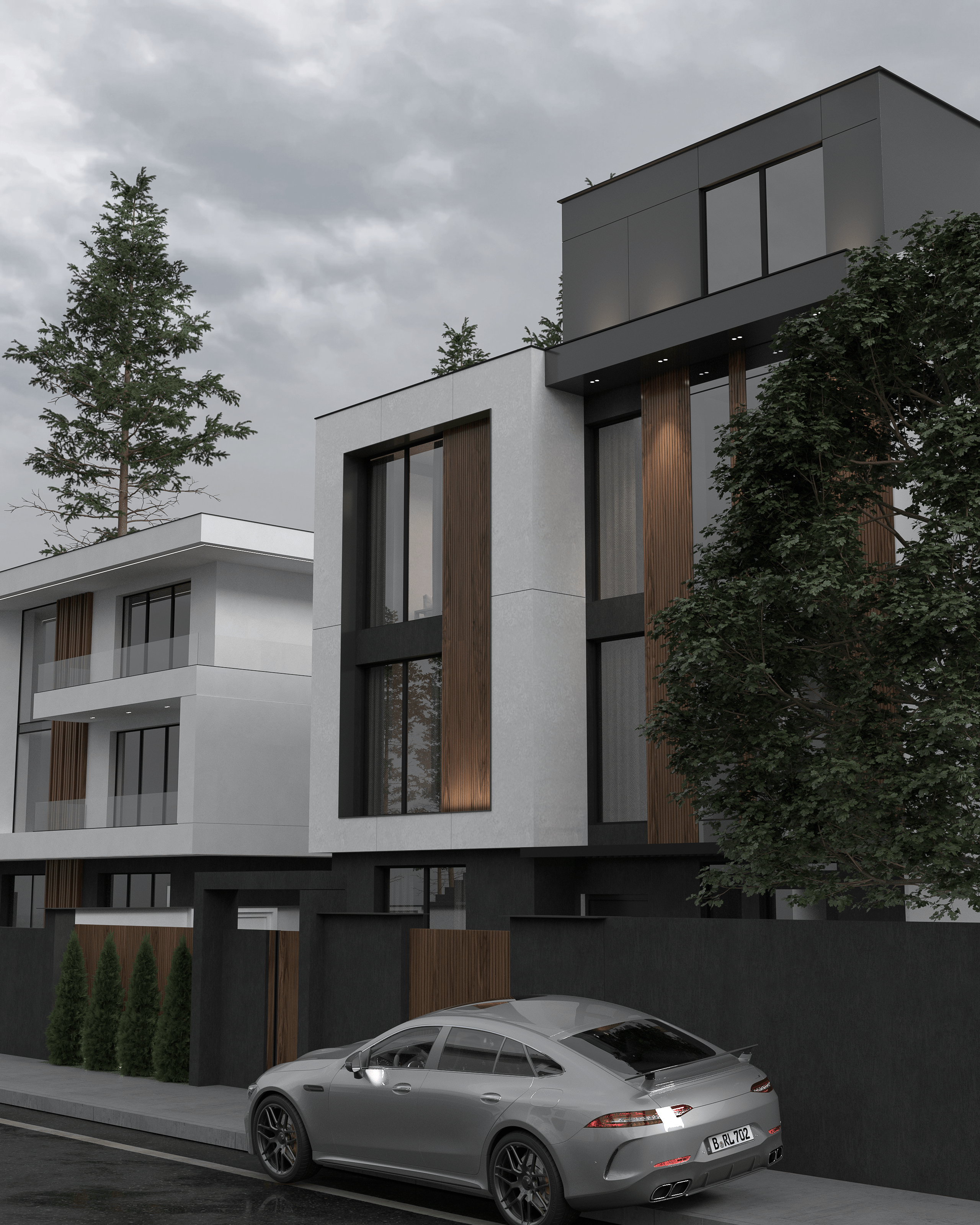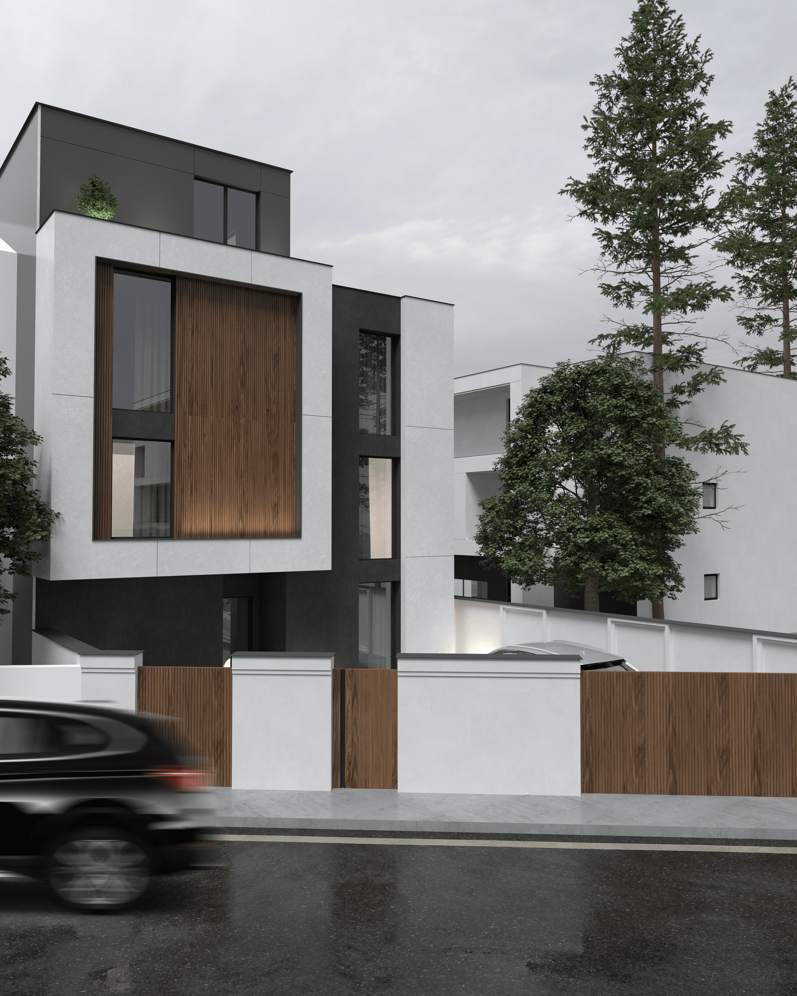 The most difficult challenge in designing this house was the limited plot size. The house is located next to another house, so it was important to design a house that was functional and aesthetically pleasing, while also respecting the privacy of the neighbors. To overcome this challenge, we used a vertical layout for the house, with three stories. This allowed for a spacious and comfortable home on a small footprint.